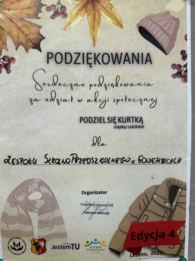 Zakończyliśmy zbiórkę charytatywną „Podziel się kurtką” organizowaną przez Leszczyński Bank Żywności. ![]()