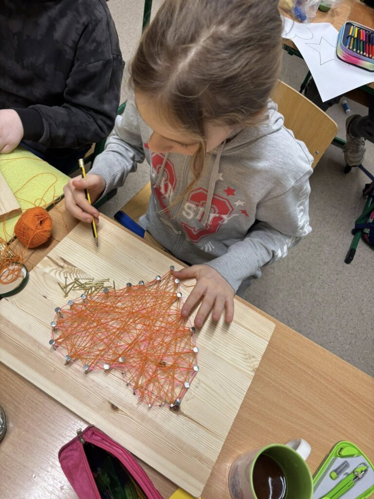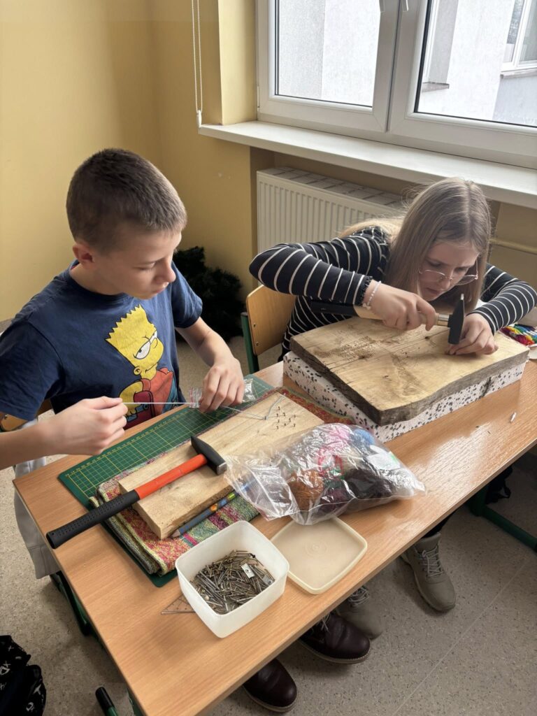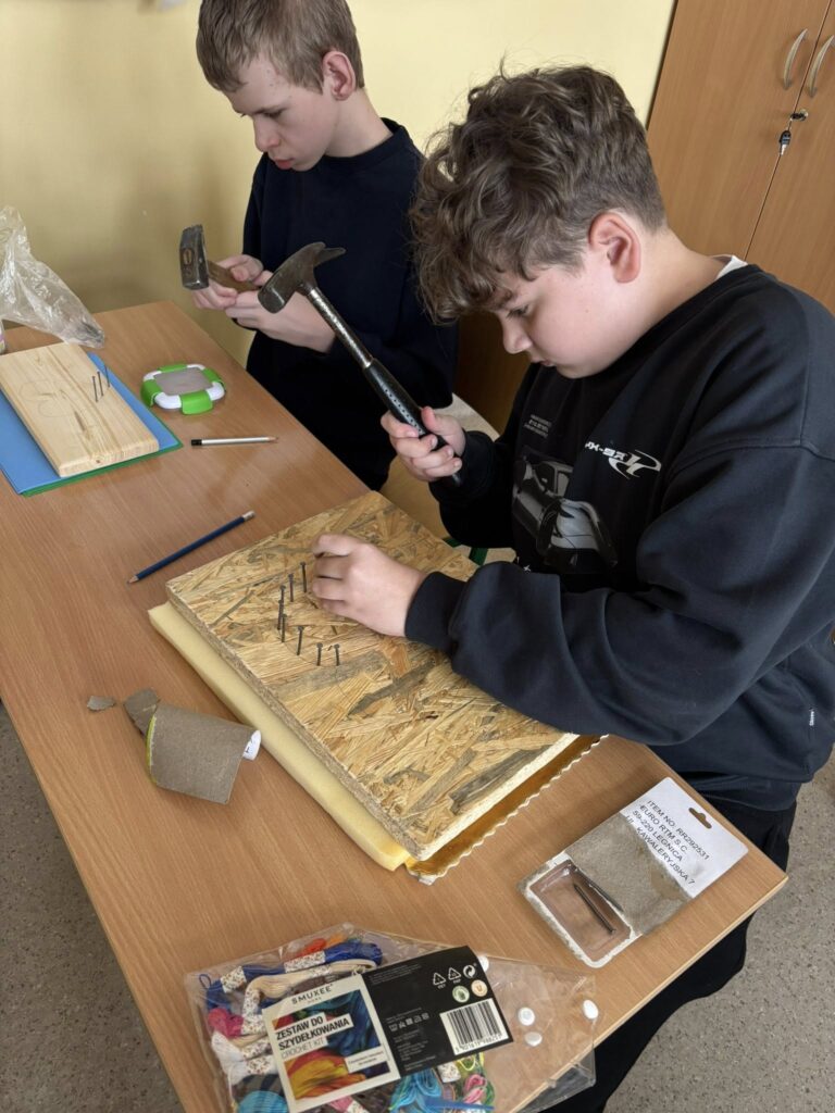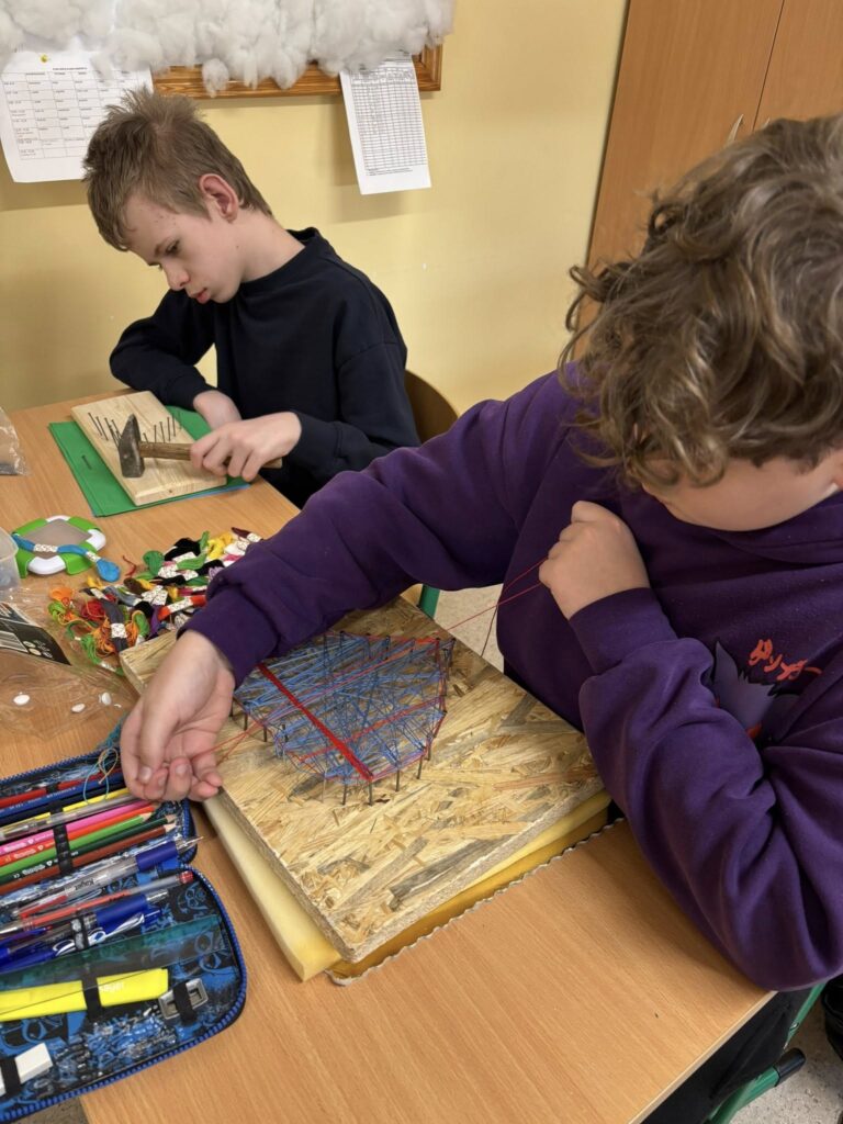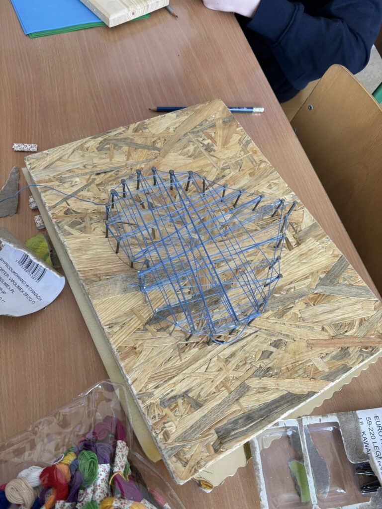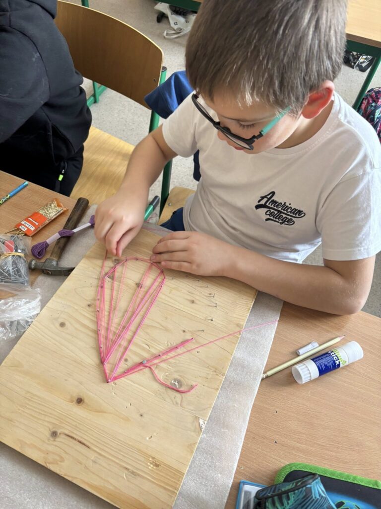 Praca z gwoździami i kolorowymi nićmi wymagała skupienia, precyzji i cierpliwości – a efekty? Po prostu super! ![]()