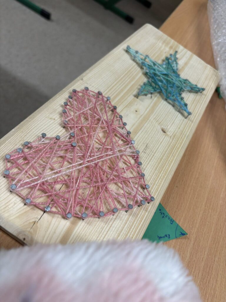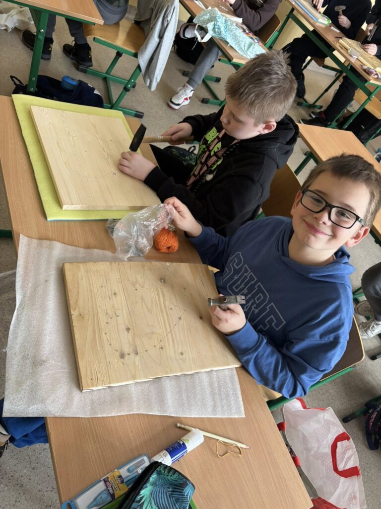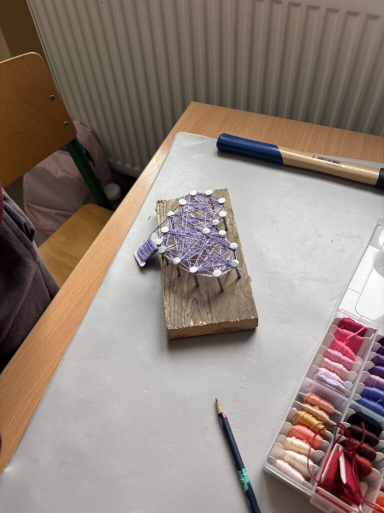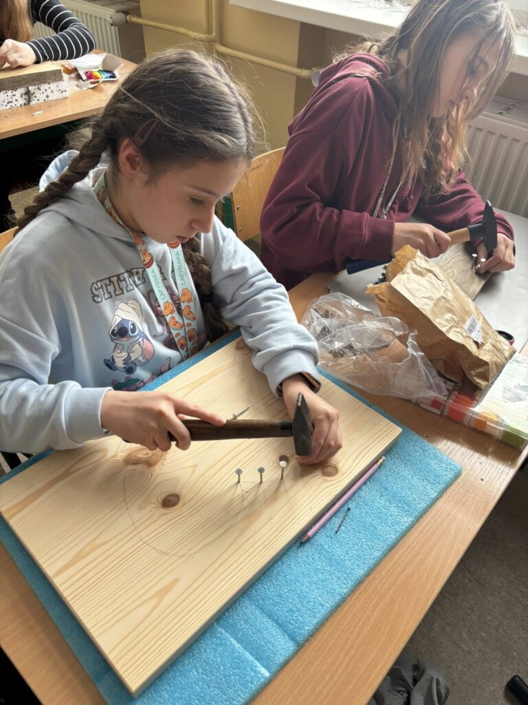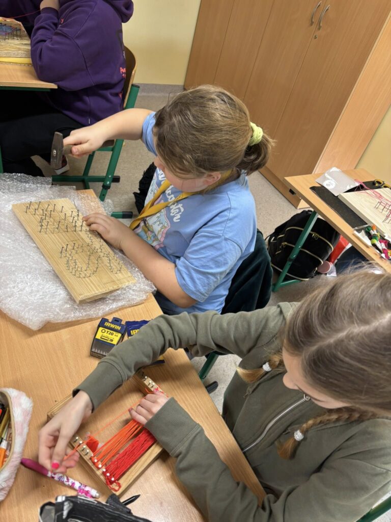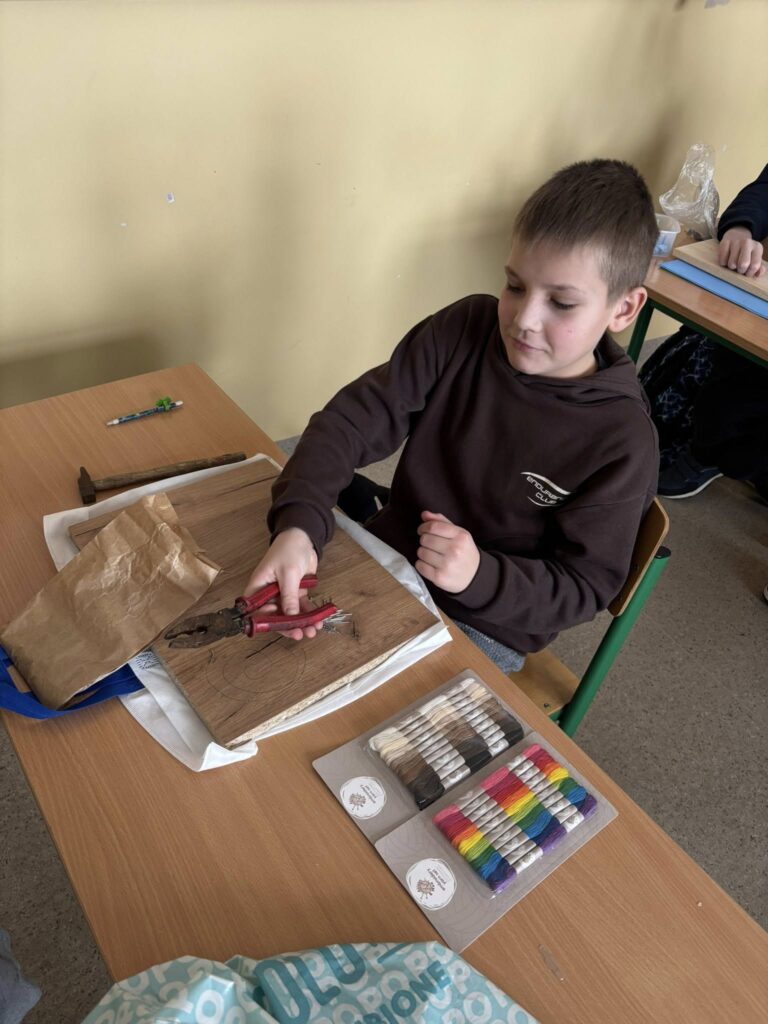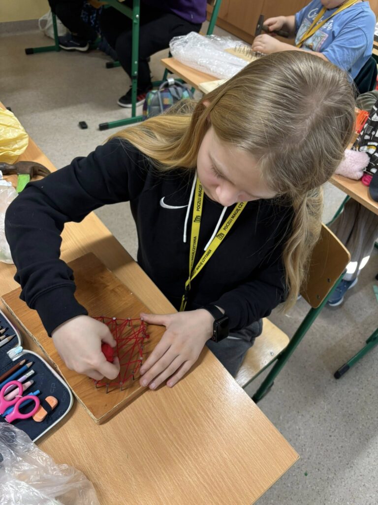 Praca z gwoździami i kolorowymi nićmi wymagała skupienia, precyzji i cierpliwości – a efekty? Po prostu super! ![]()
