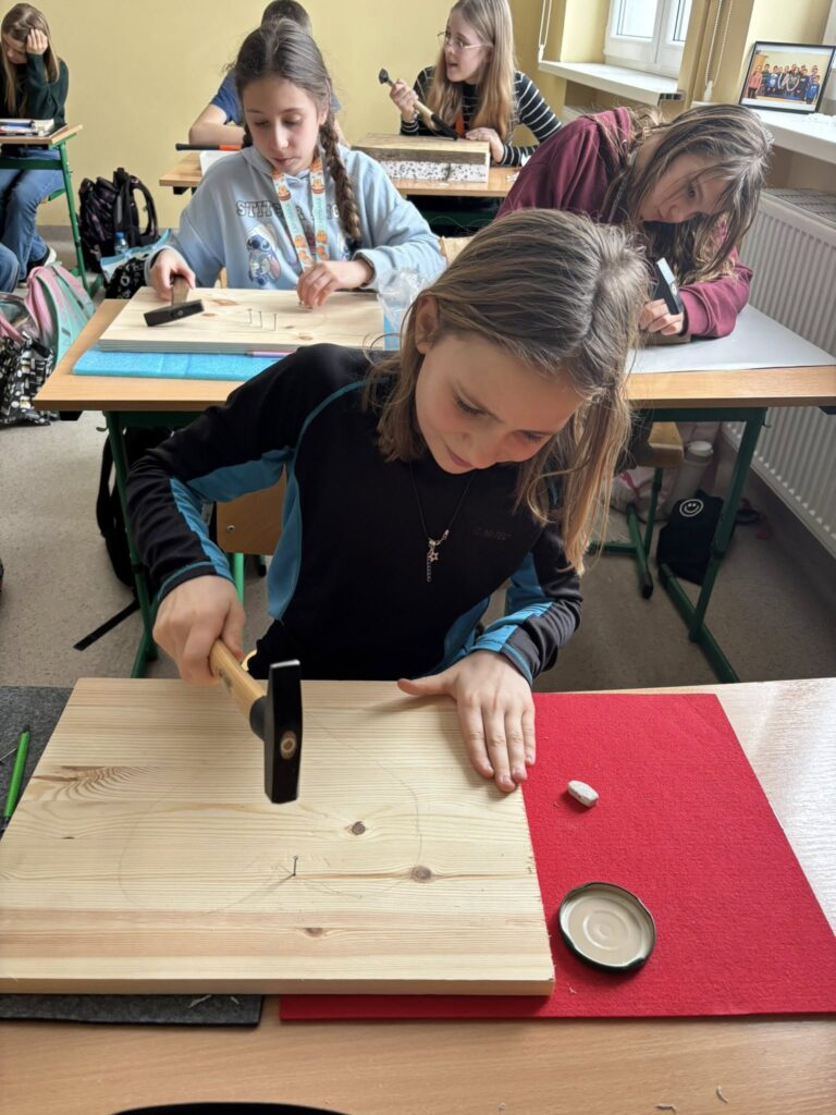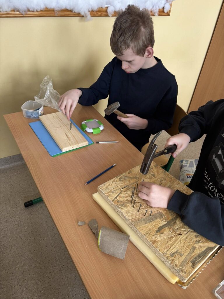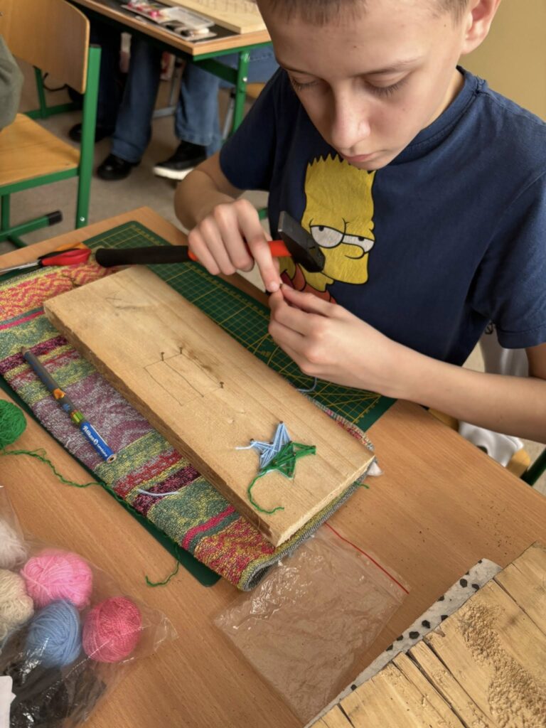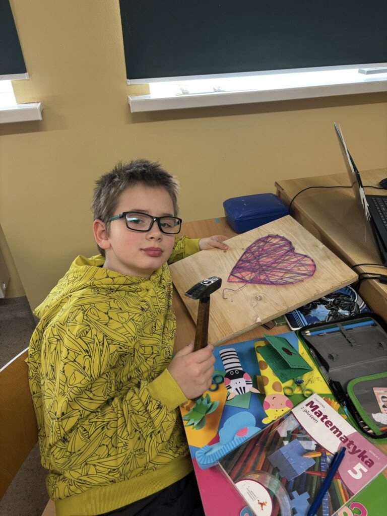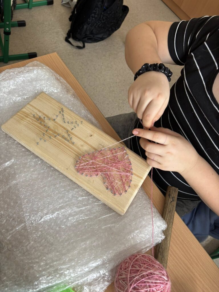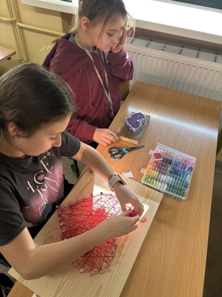 Praca z gwoździami i kolorowymi nićmi wymagała skupienia, precyzji i cierpliwości – a efekty? Po prostu super! ![]()