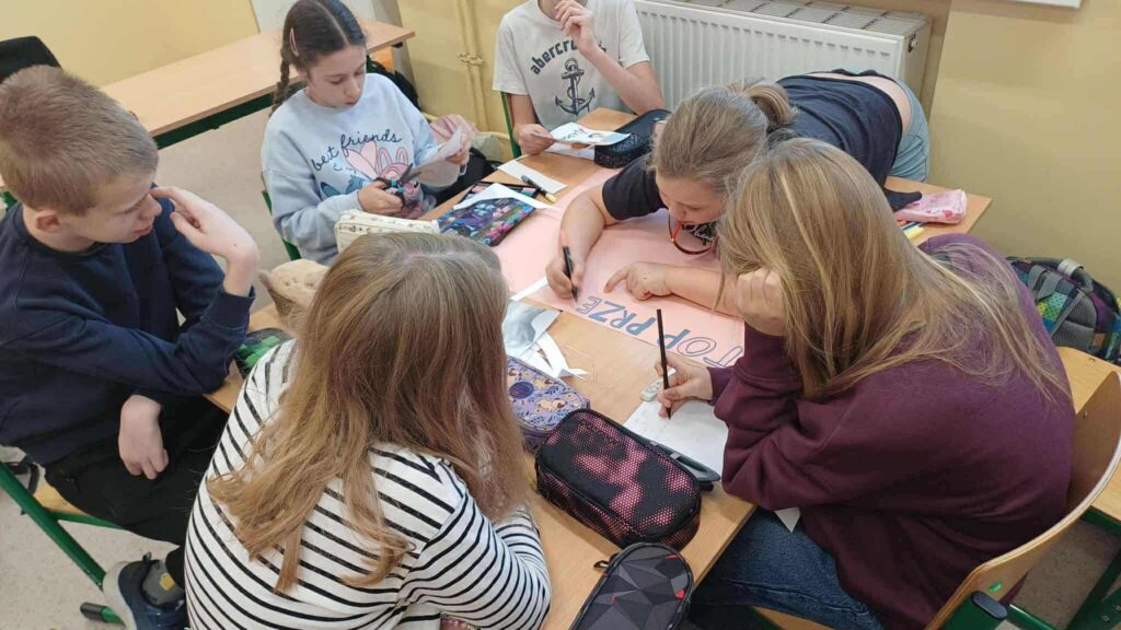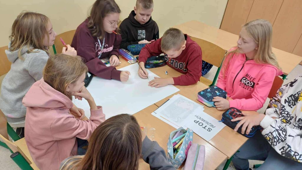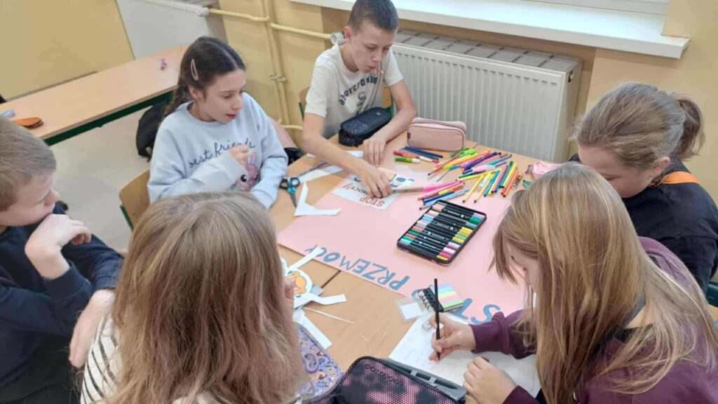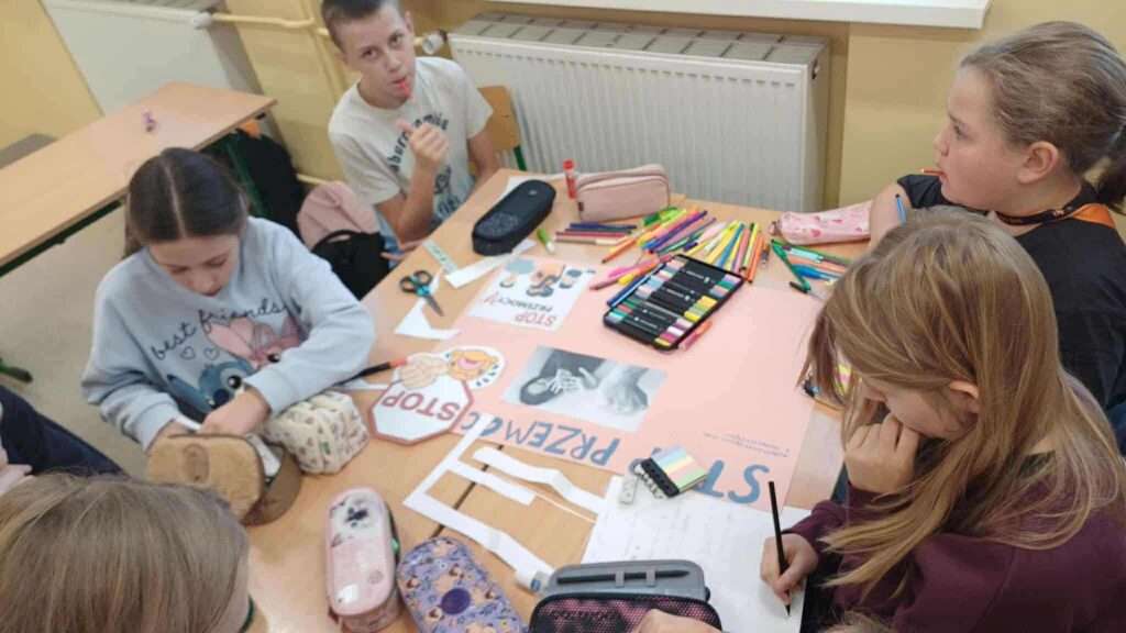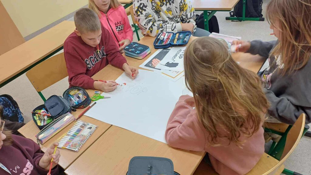 🏫 W szkole uczniowie podczas godzin wychowawczych przygotowywali plakaty na wewnątrzszkolny konkurs przeciwko hejtowi – efekty ich pracy na pewno będą inspirujące i pełne ważnych przesłań.