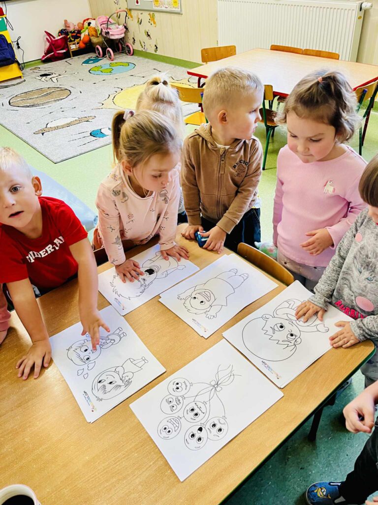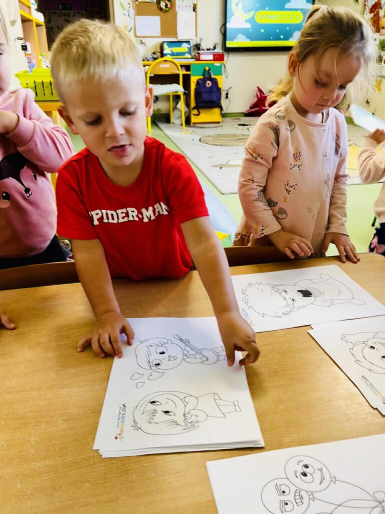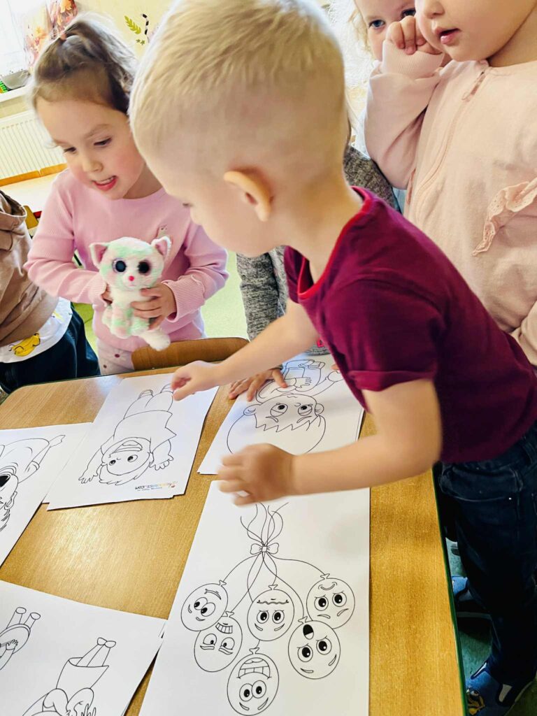 Dzieci czytały bajki terapeutyczne oraz kolorowały obrazki przedstawiające różne stany emocjonalne.